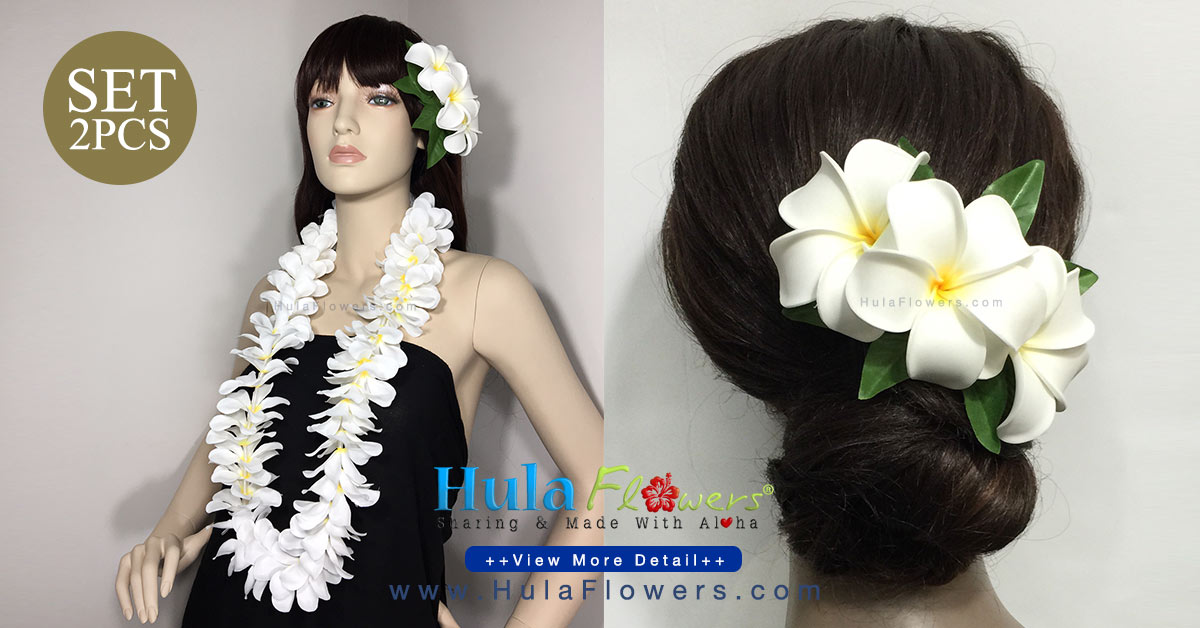 Silk Plumeria Lei & Hair Clip Set